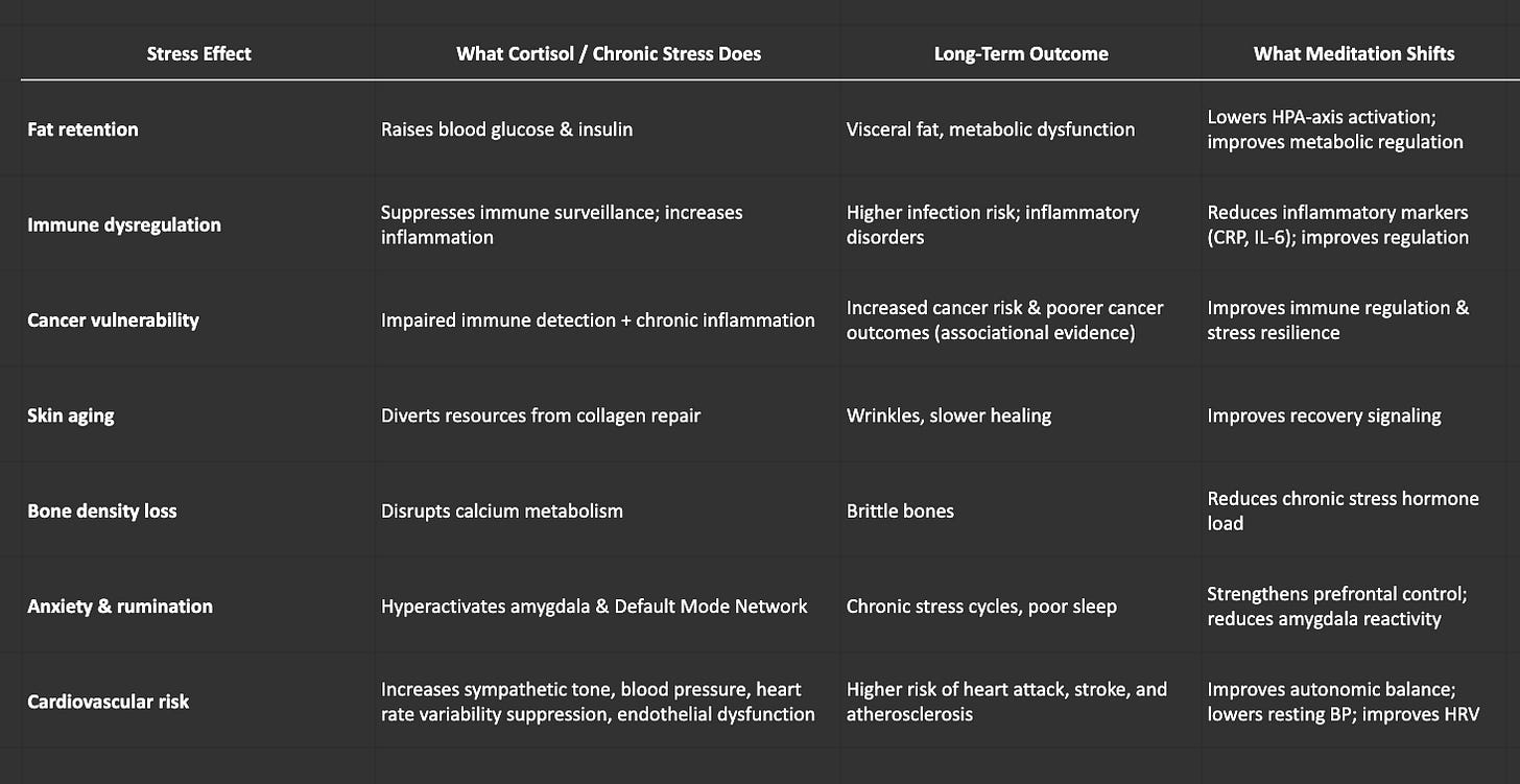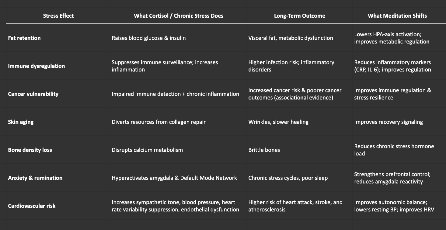 I mean, I canât make you, but if you donât meditate, youâre more likely to have unstable high cortisol levels which is bad because cortisol tells your body to pause healing and instead re-allocate resources to physically fight the man who is about to stab you with a knife. After a while, if your cortisol levels remain too high for too long, you become ugly and wrinkly with blotchy skin, inflamed with brittle bones and auto-immune disorders and higher blood pressure and higher fat retention and more cancer and riskier heart problems and sooner die.